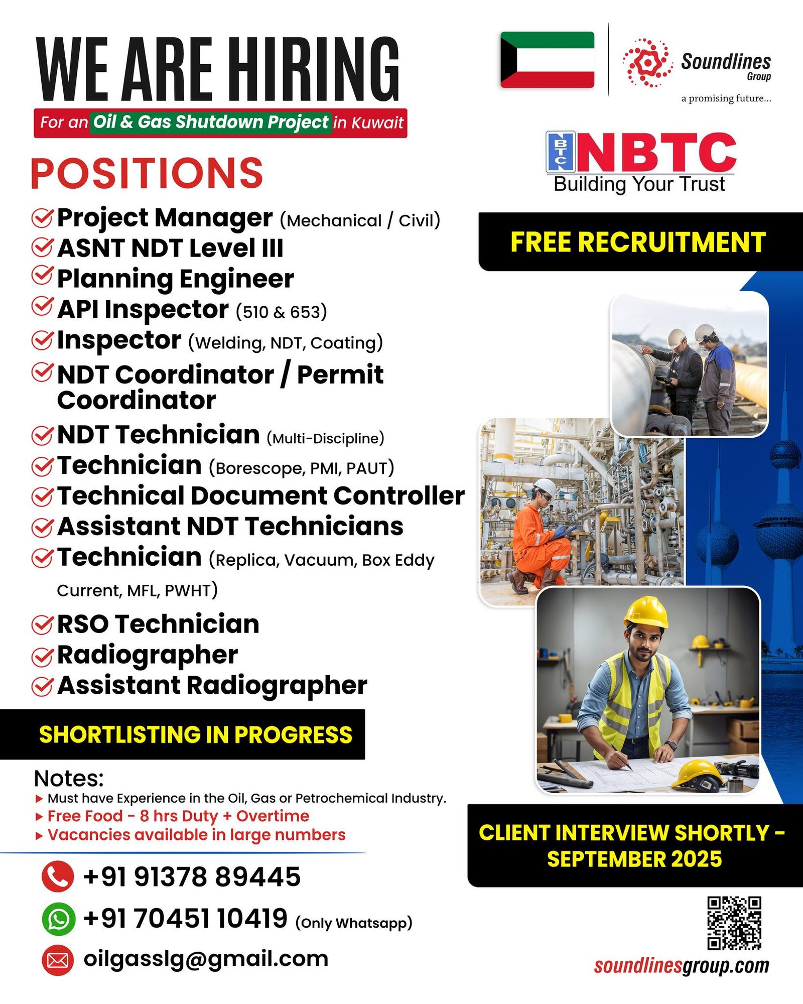 Recruitment For an Oil & Gas Shutdown Project in Kuwait