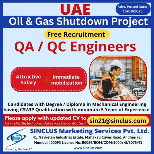Urgent Job Openings in Abu Dhabi Oil & Gas Project