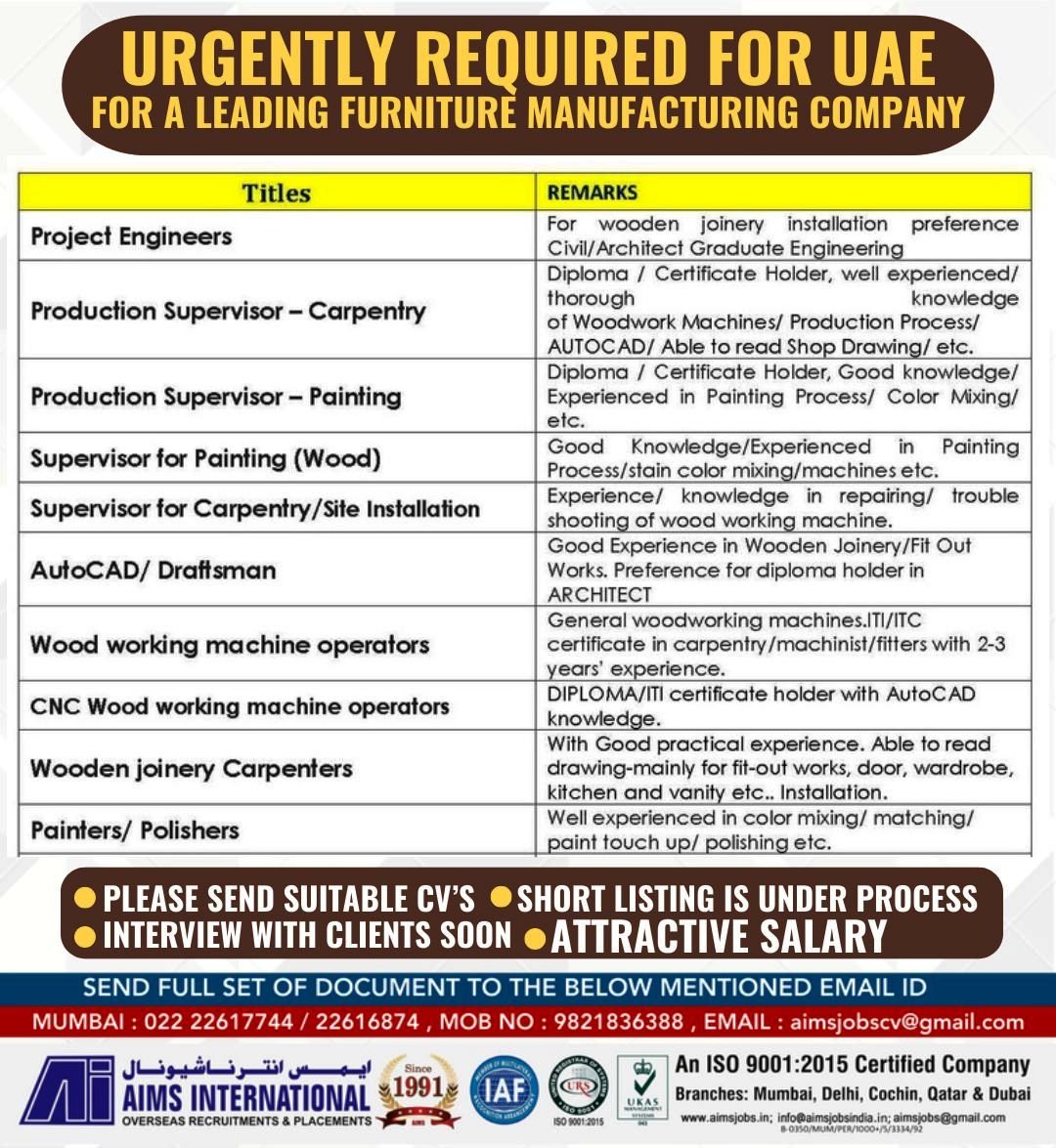 UAE – Hiring for Leading Furniture Manufacturing Company