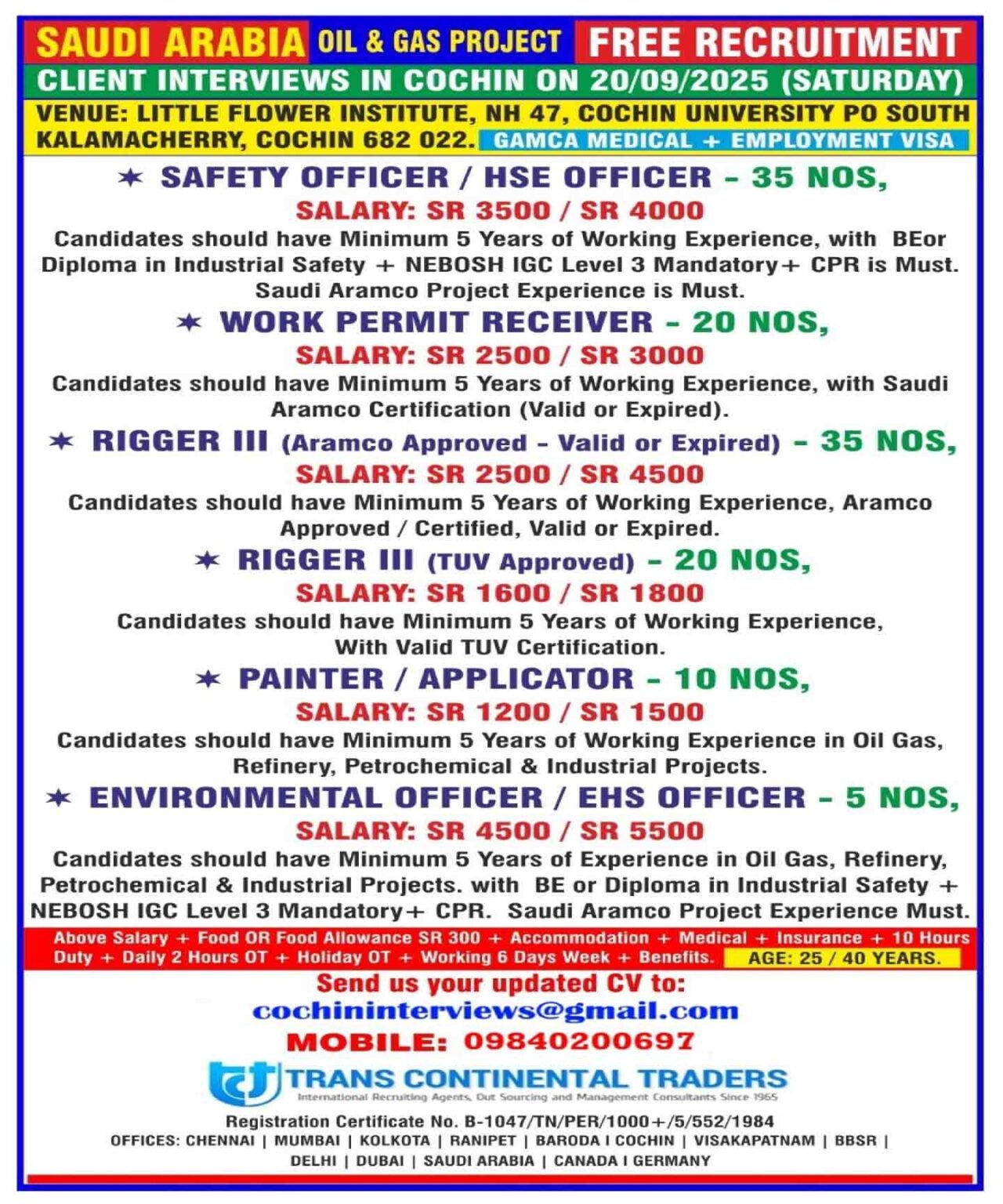 Exciting Job Opportunities in Saudi Arabia Oil & Gas Project | Free Recruitment 2025