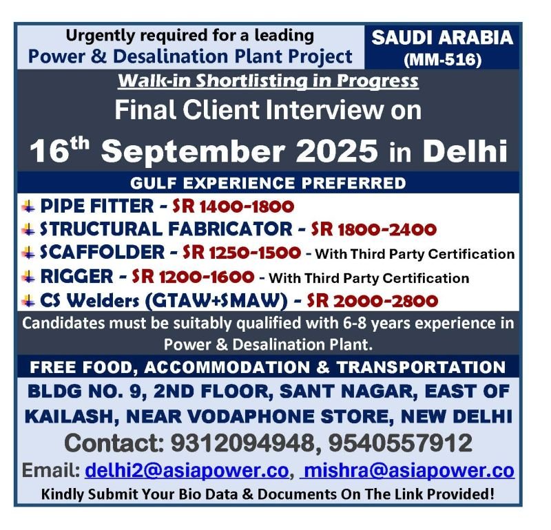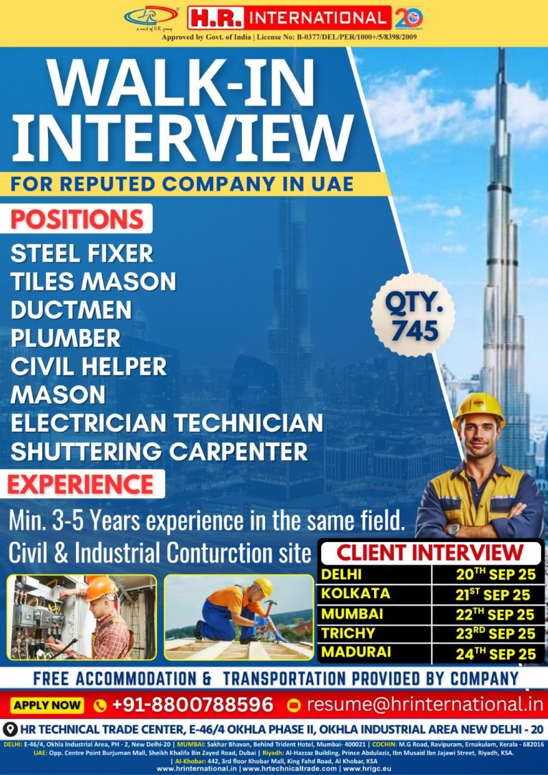 Urgent Job Openings for UAE: Final Interviews on 15th September 2025