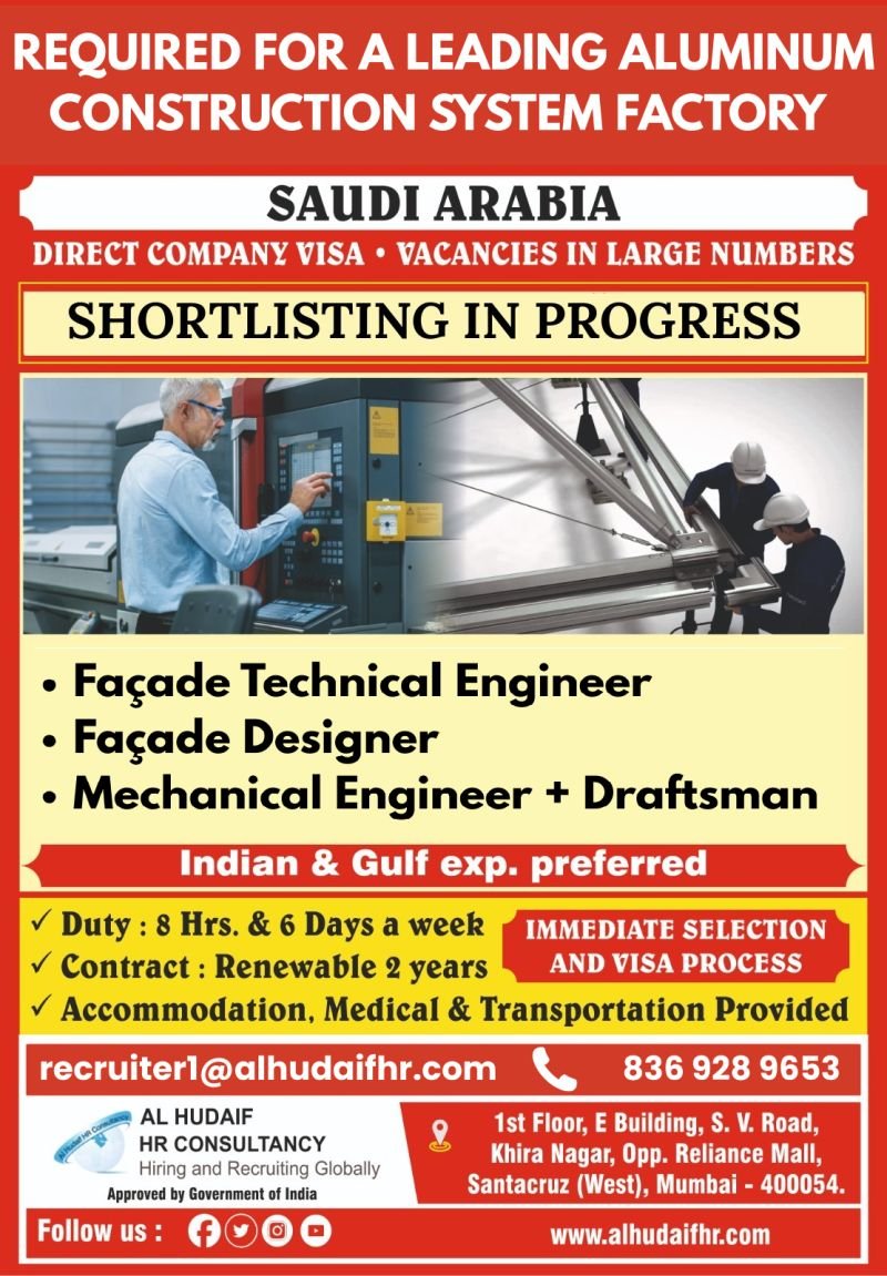 Saudi Arabia – Hiring For Leading Aluminium Construction Company