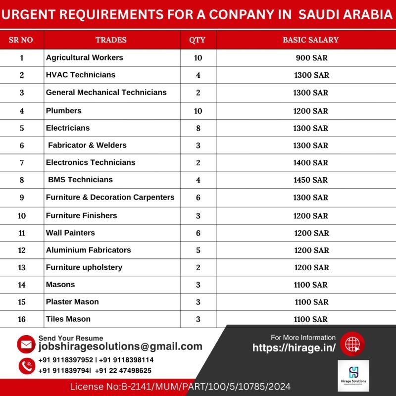Urgent Job Openings For Saudi Arabia