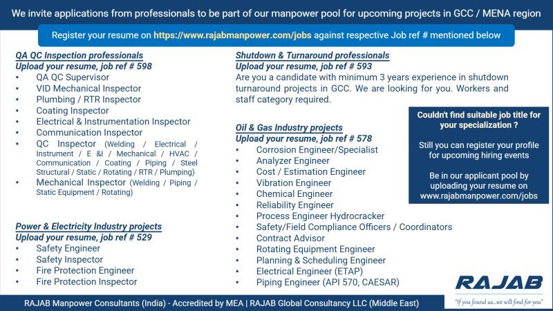 Urgent Hiring For Saudi Arabia Shutdown Project