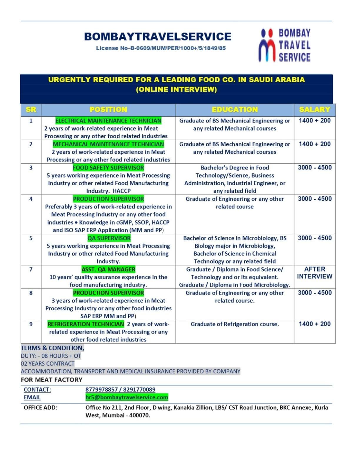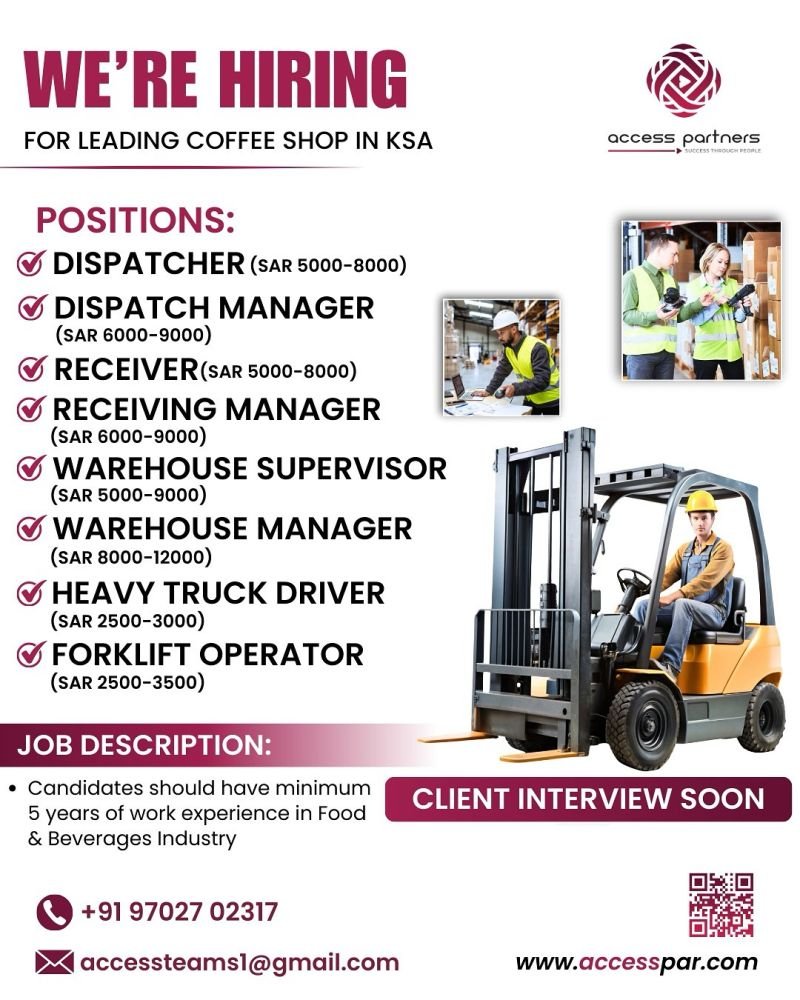 Urgent Job Openings for a Leading Food Co. in Saudi Arabia