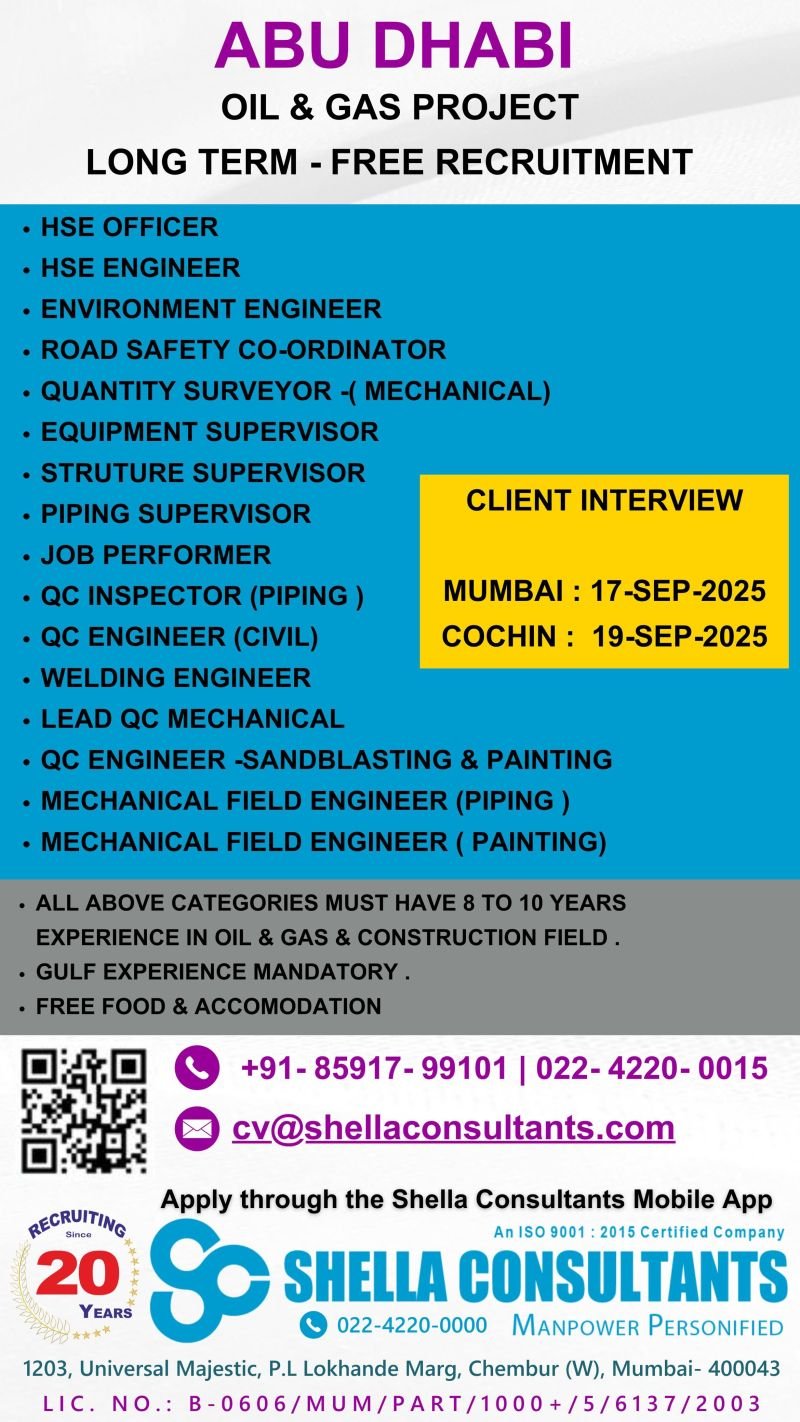 Job Opportunities in Abu Dhabi Oil & Gas Project