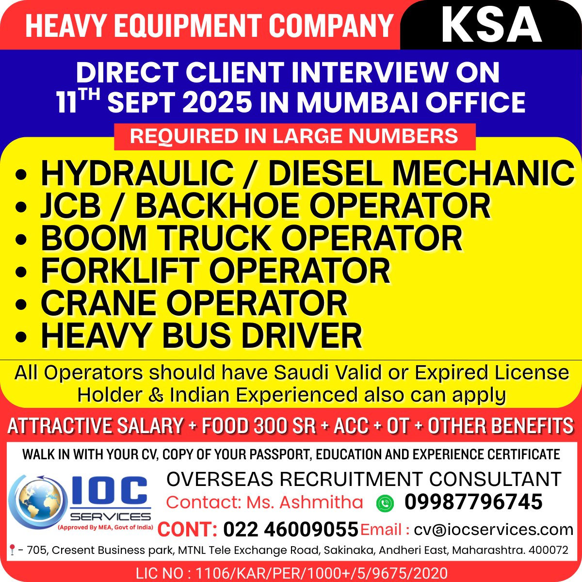 Urgent Hiring for Saudi Arabia