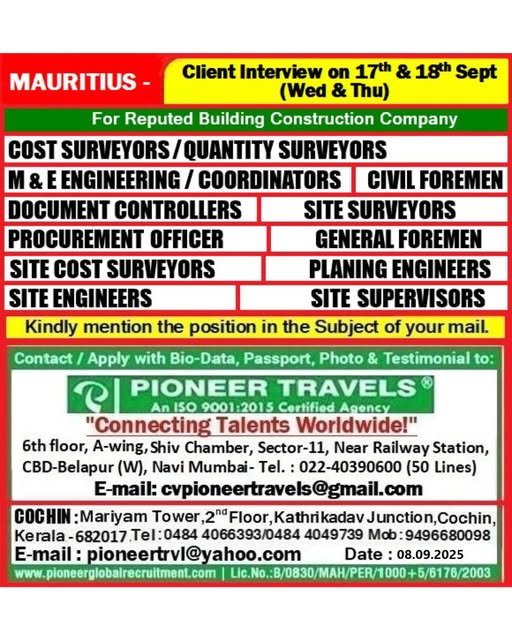 Urgent Hiring For Mauritius