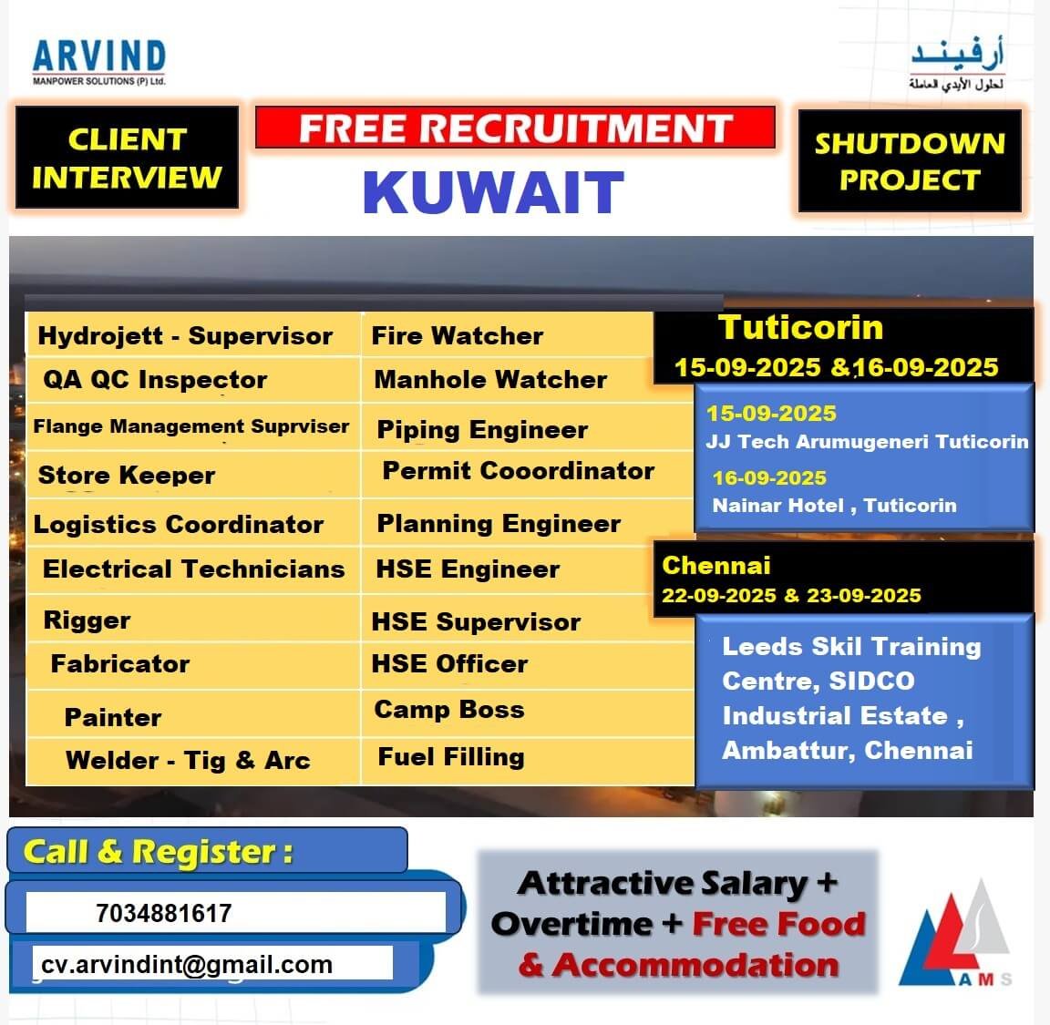 Free Recruitment for Shutdown Project in Kuwait