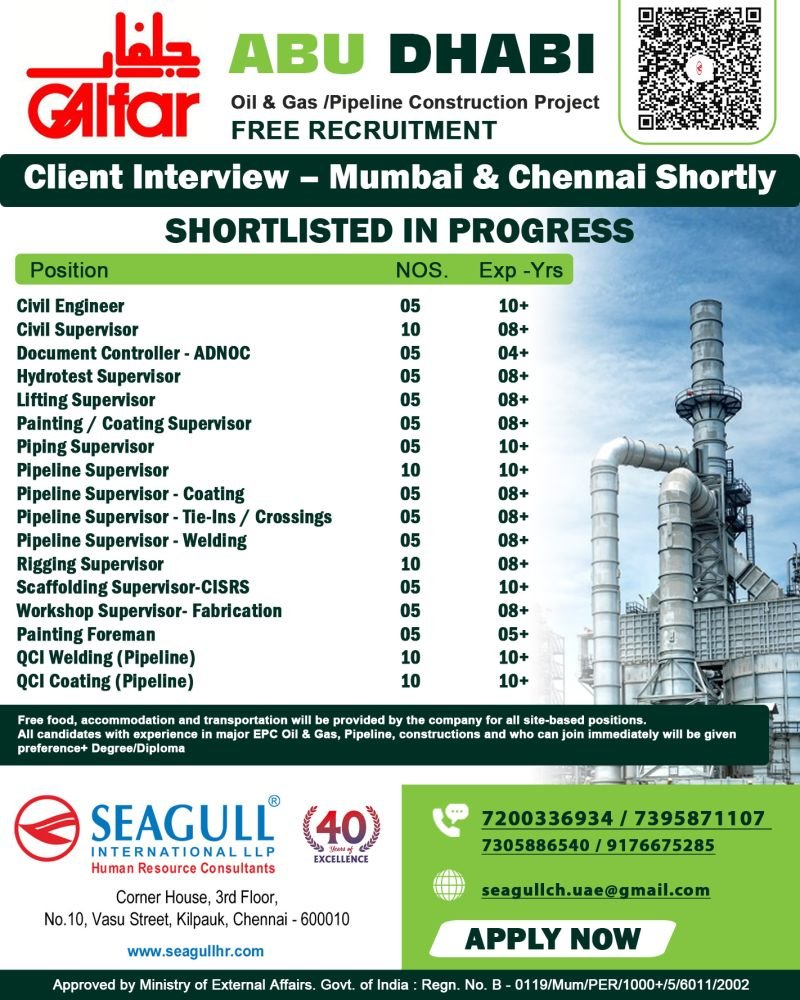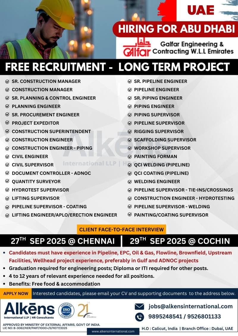 UAE – Hiring Now for Galfar Engineering & Contracting W.L.L Emirates – Abu Dhabi