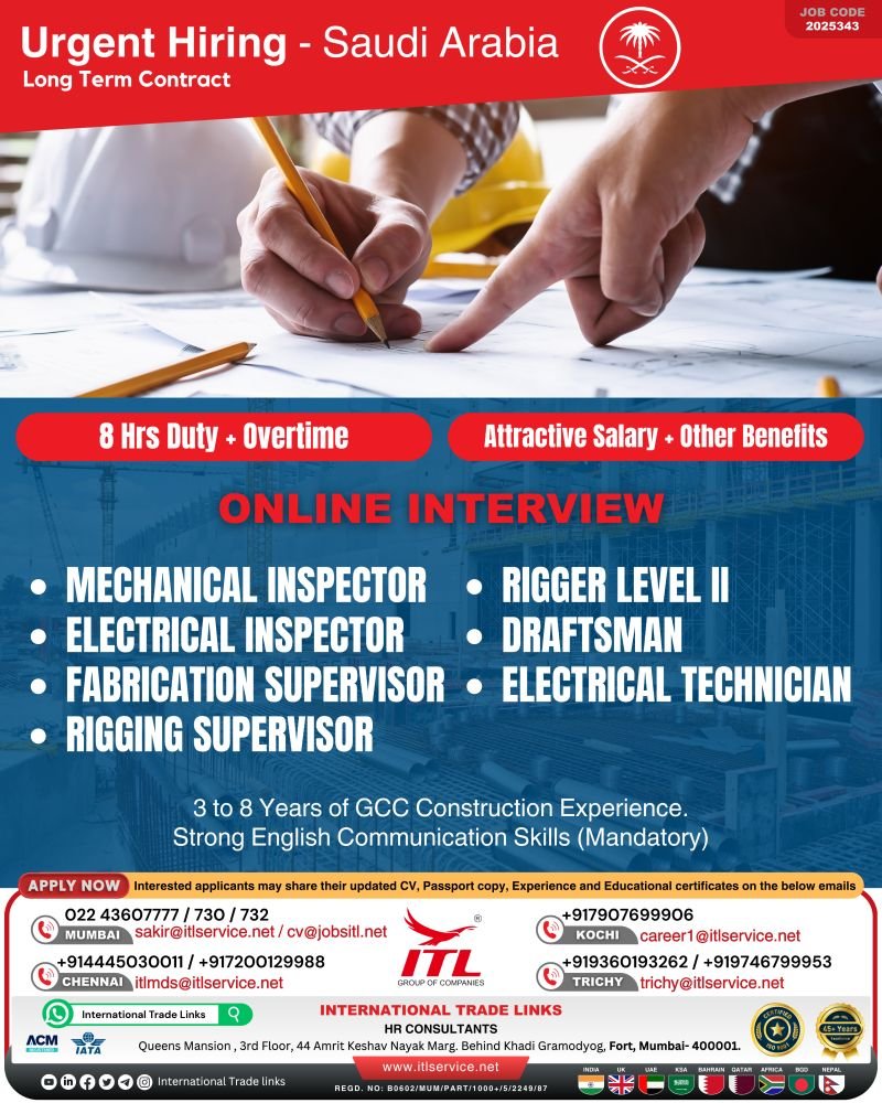 Urgent Hiring For Saudi Arabia – Online Interview