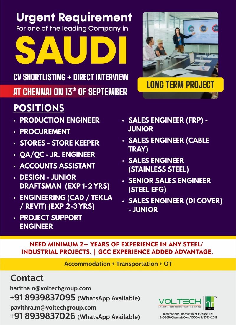 Urgent Requirement for Saudi Arabia – Leading Company