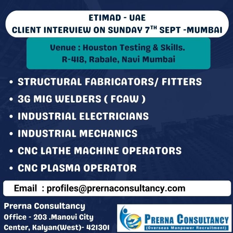 Hiring for Etimad – UAE | Client Interview on Sunday 7th Sept – Mumbai