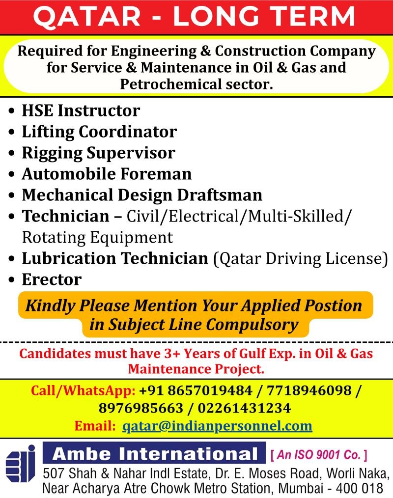 Qatar – Hiring for Engineering & Construction Company for Service & Maintenance in Oil & Gas and Petrochemical sector
