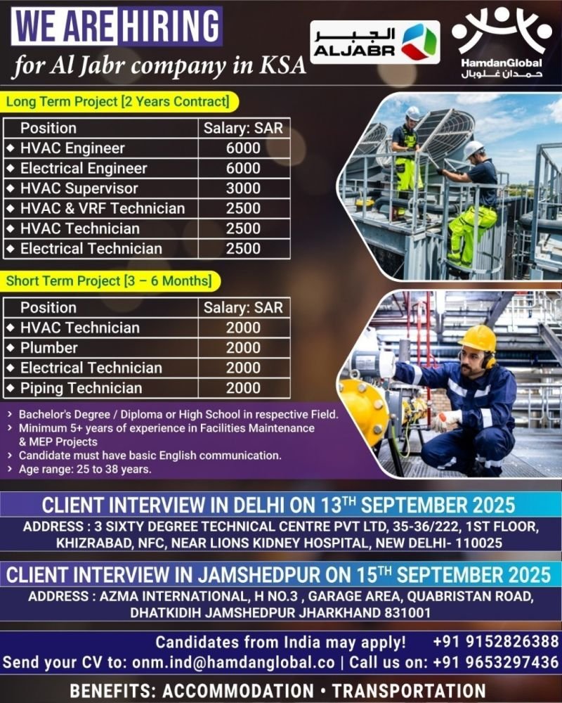 hiring for Al Jabr company in Saudi Arabia