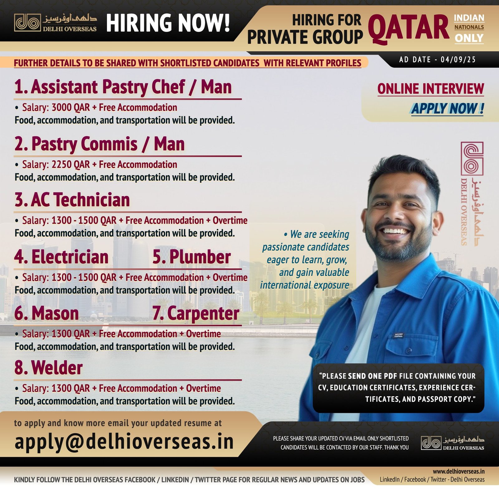 Hiring Now for Qatar, Dubai, and Russia | Free Recruitment