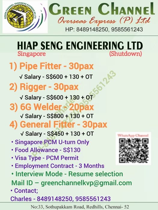 Hiring Now for Hiap Seng Engineering Ltd, Singapore (Shutdown)