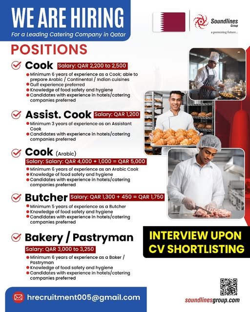 Wanted For a Leading Catering Company in Qatar