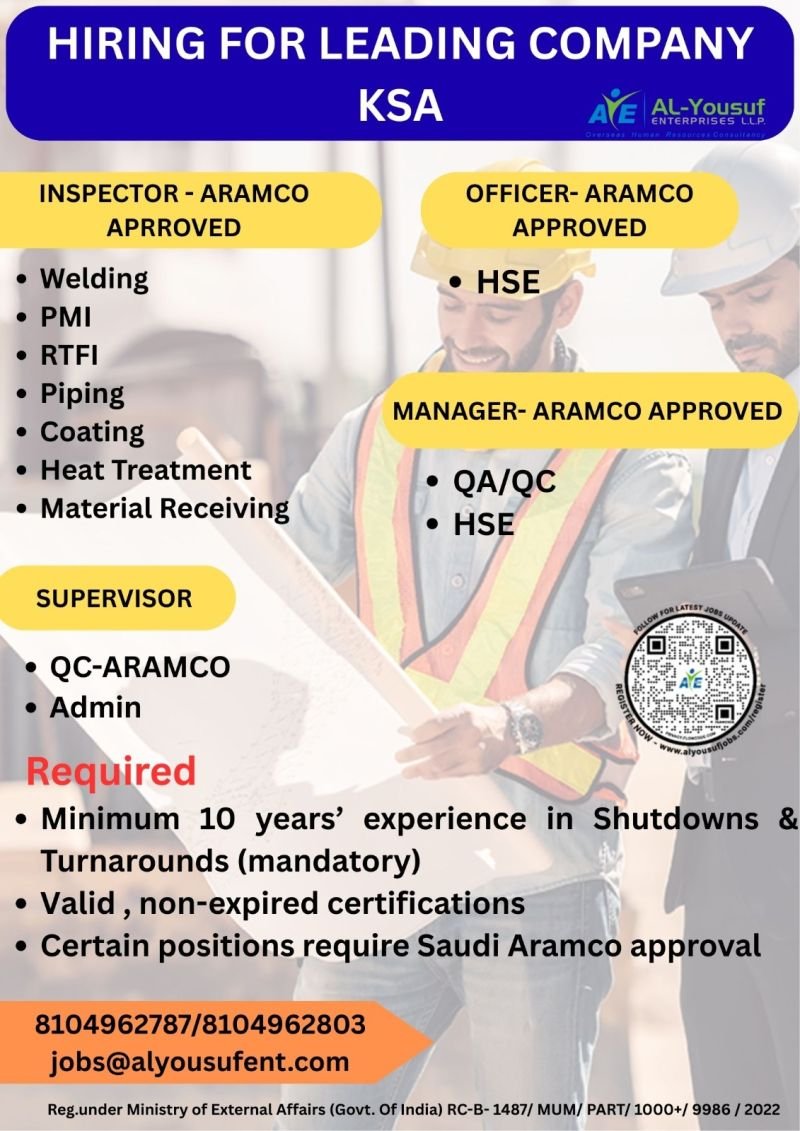 Saudi Arabia – Urgently hiring qualified professionals for Shutdowns & Turnarounds Projects.