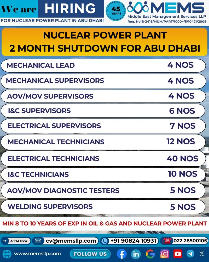 UAE – hiring for Nuclear Power Plant In Abu Dhabi