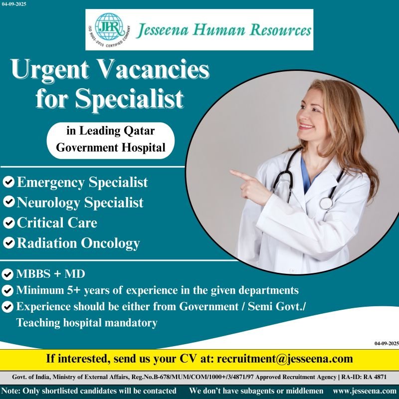 Urgent Vacancies for Specialist in Leading Qatar Government Hospital