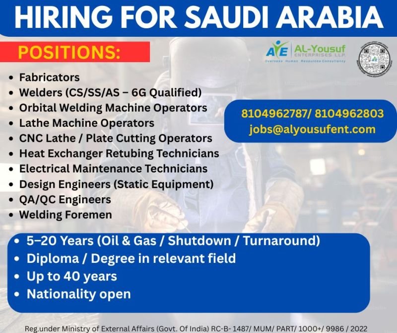 hiring for Abis company in Saudi Arabia