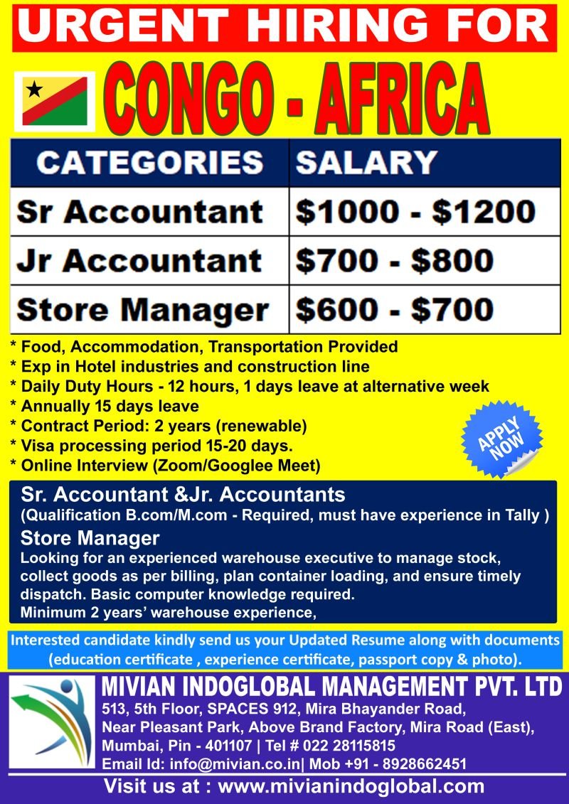 Urgent Hiring for Congo – Africa