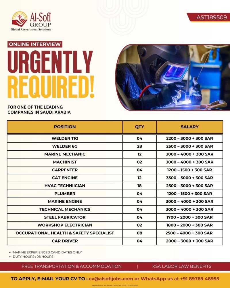 Urgent Hiring for Leading Companies in Saudi Arabia – Online Interview