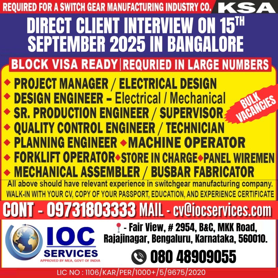 Saudi Arabia Switchgear Manufacturing Jobs – Direct Client Interview