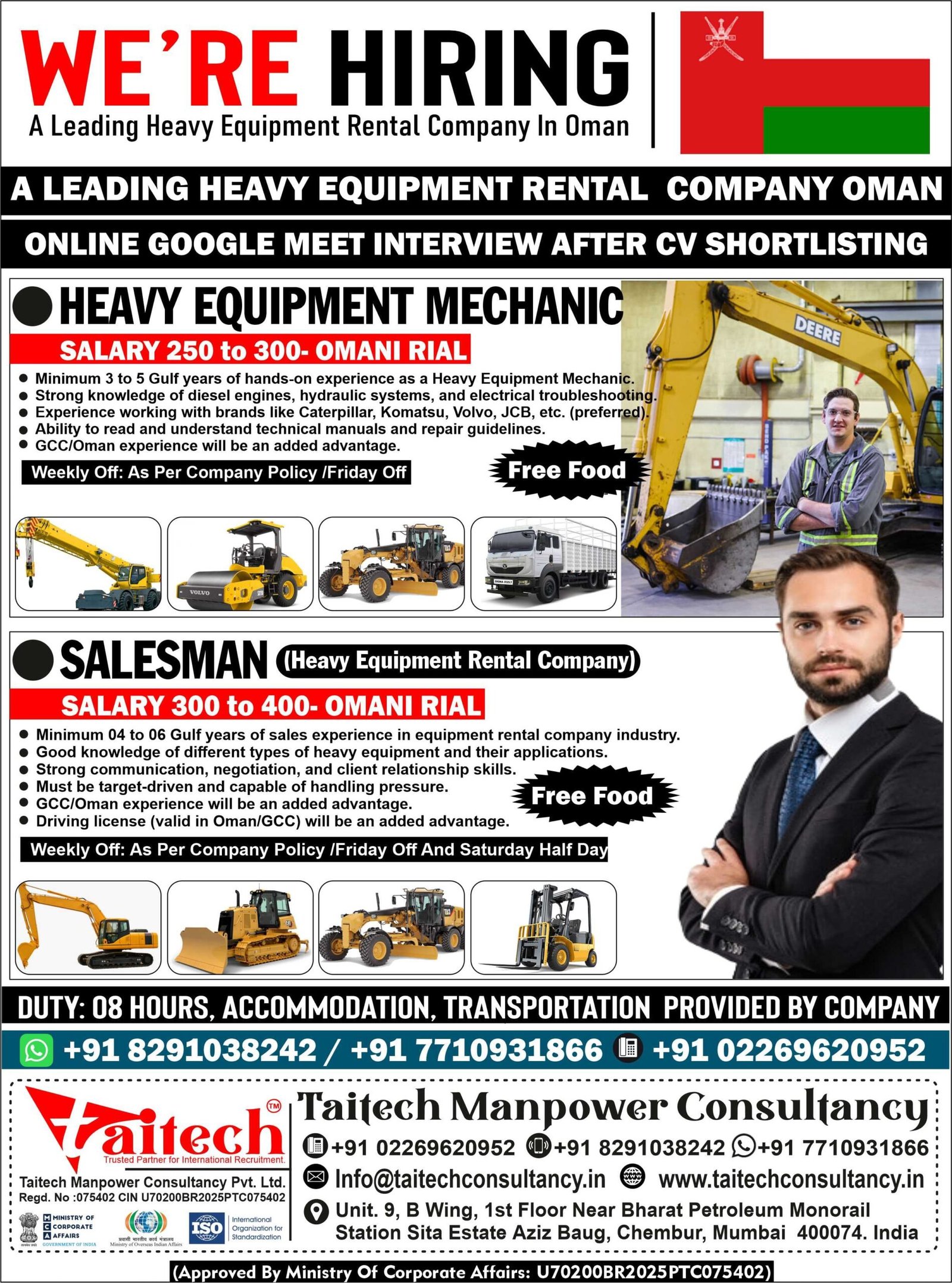 Oman Heavy Equipment Jobs – Hiring!
