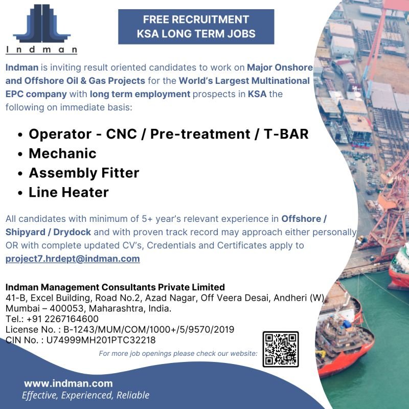 Free Recruitment For Saudi Arabia – Long Term Jobs