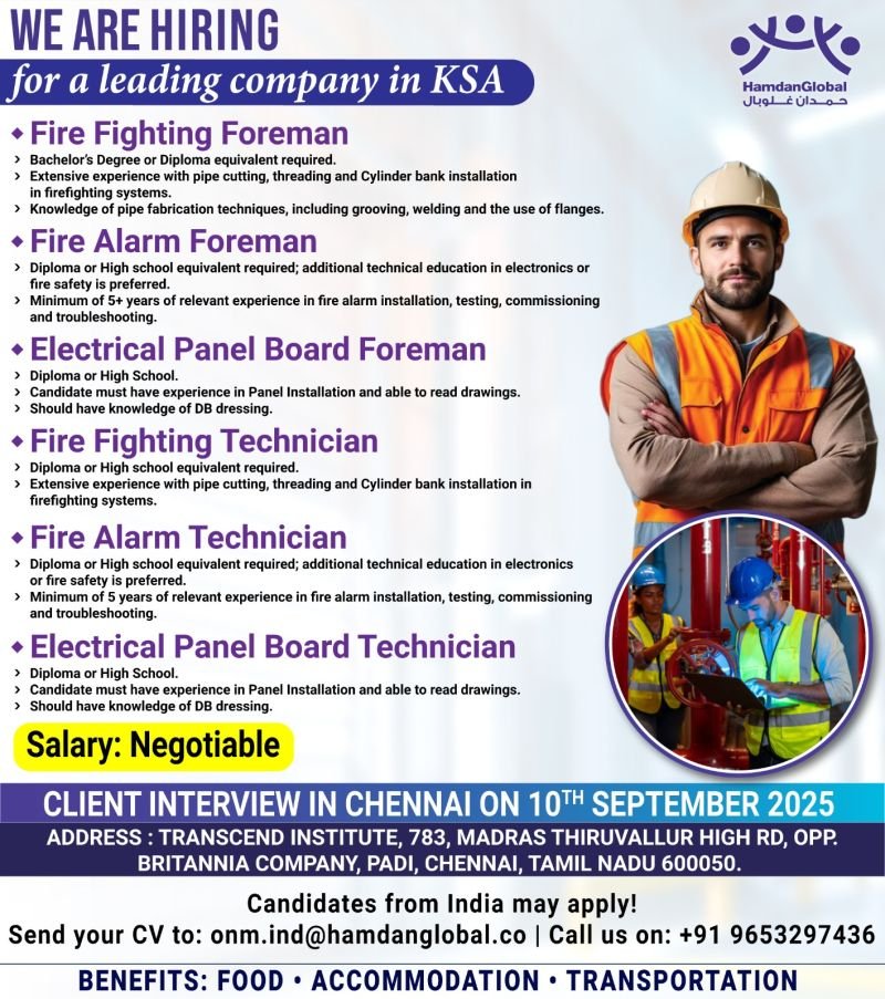 Jobs in Saudi Arabia – hiring for various technical and engineering roles
