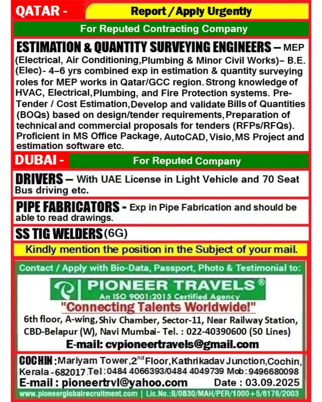 UAE Engineering & Contracting Jobs – Urgent Hiring