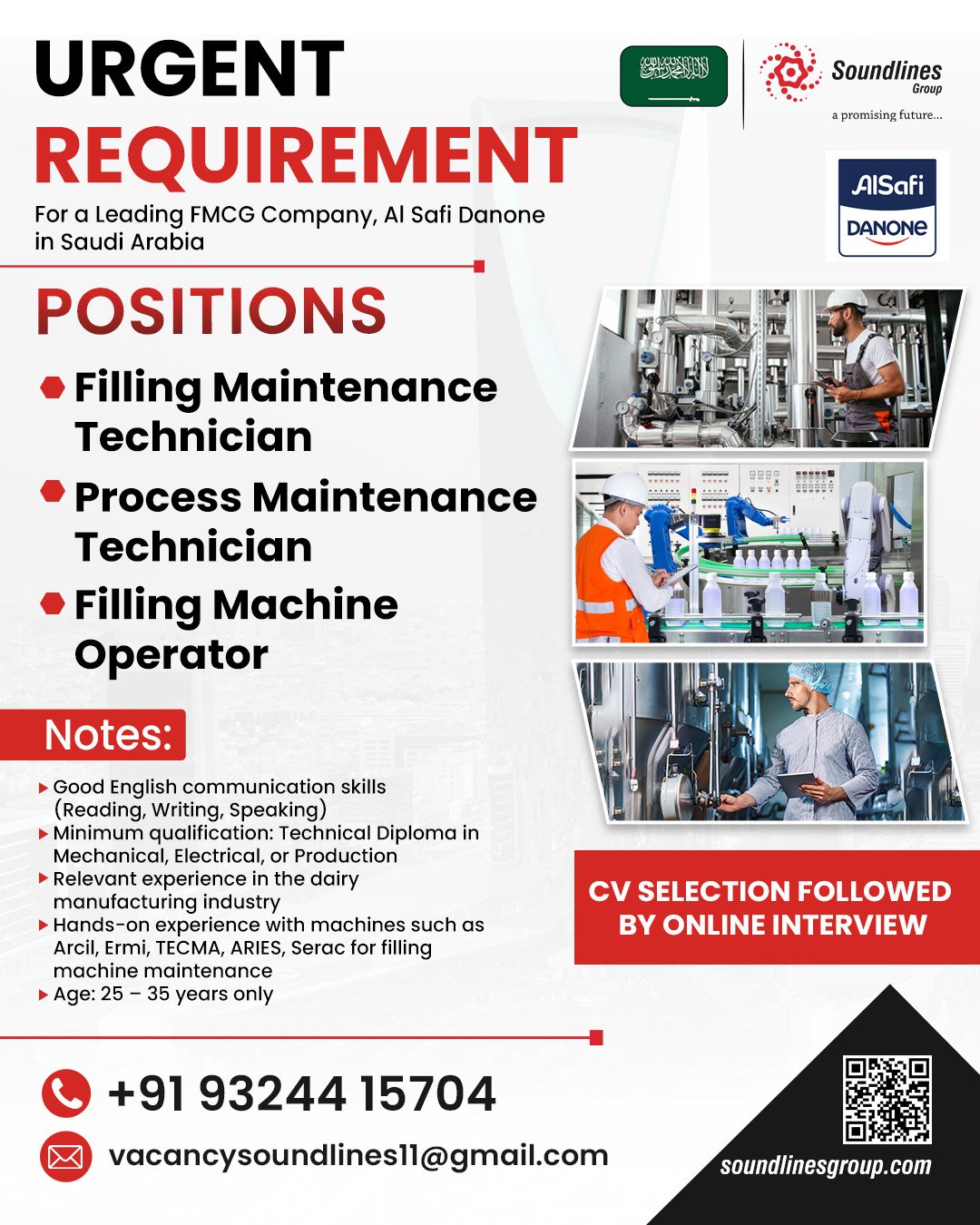 Recruitment For a Leading FMCG Company, Al Safi Danone in Saudi Arabia