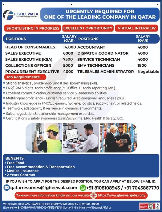 Job Opportunities at Qatar (Offshore Oil & Gas Project)