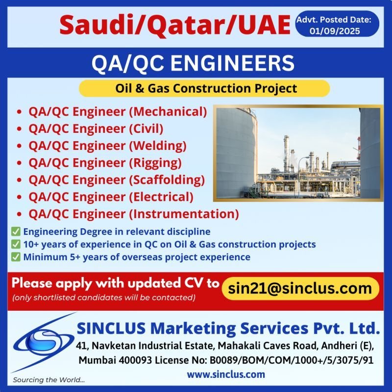 Urgent Hiring for QA/QC Roles in Saudi Arabia