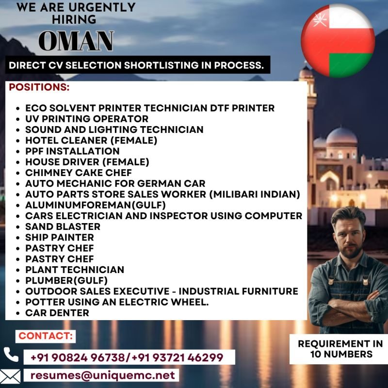 Urgent Hiring in Oman – Direct CV Selection Now Open