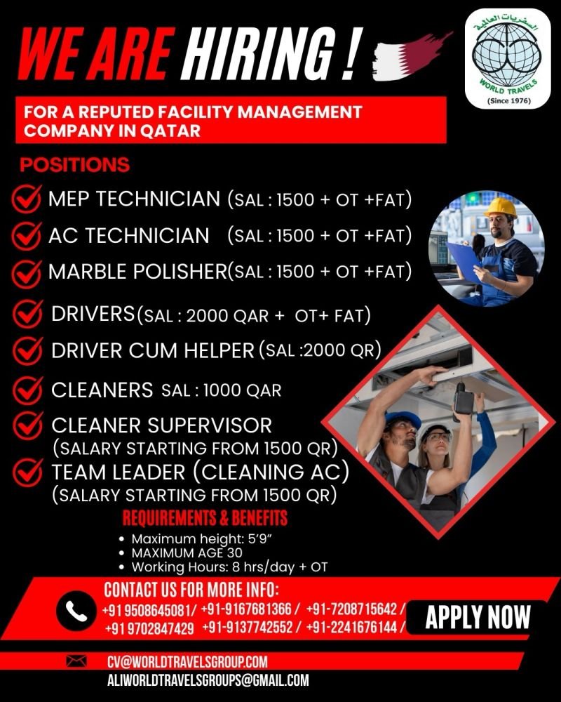 Qatar Job Opportunities – Free Recruitment – Vacancies in Large Numbers