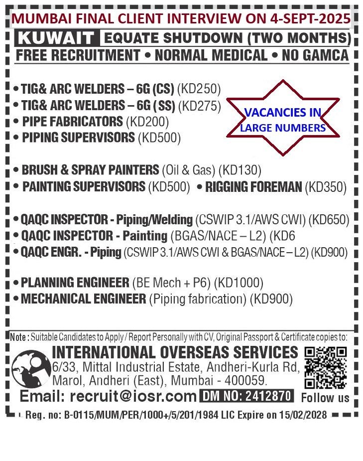 Urgent Hiring for Equate Shutdown 2026 Project in Kuwait with NBTC