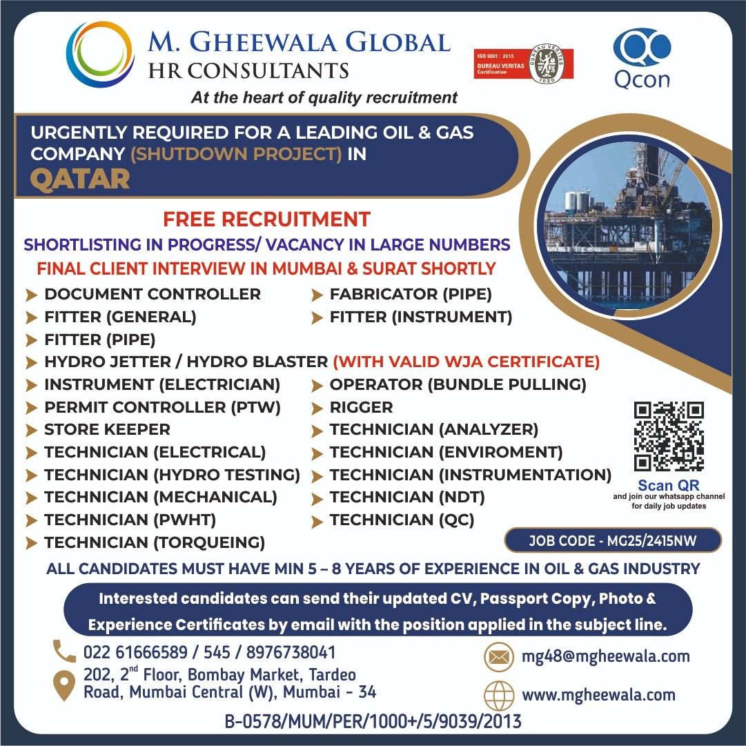 Urgent Hiring for Oil & Gas Jobs in Qatar