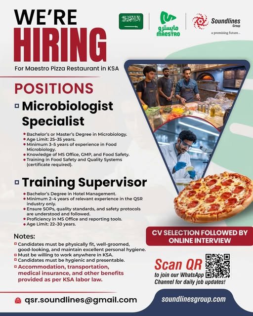 Saudi Arabia – Hiring For Maestro Pizza Restaurant
