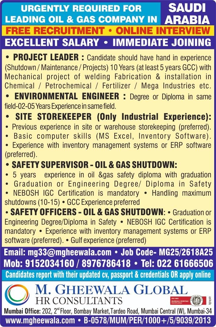 Job Opportunities with Leading Oil & Gas Company in Saudi Arabia