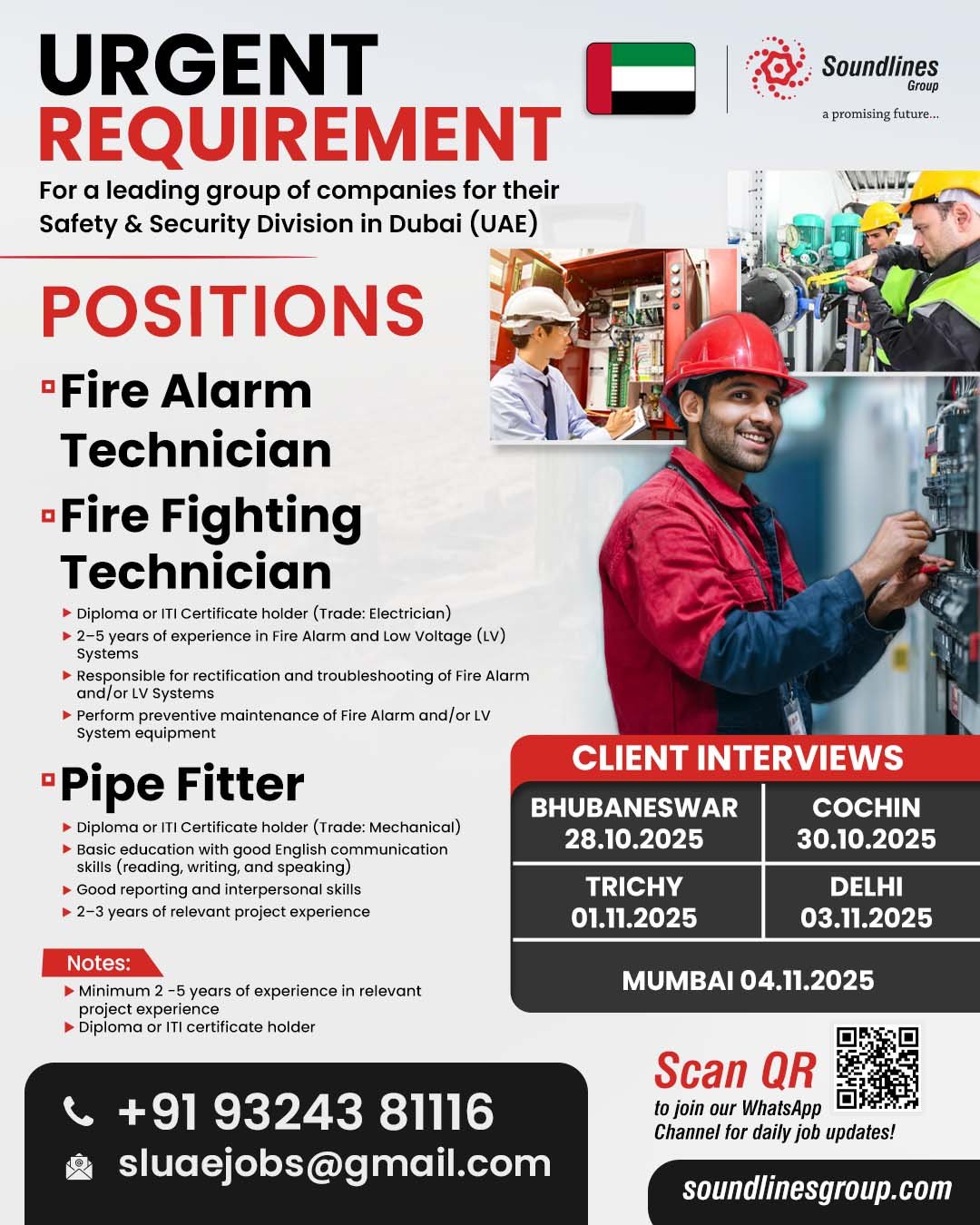 UAE : Hiring For a leading group of companies for their Safety & Security Division in Dubai