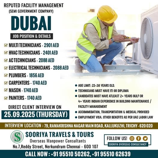 UAE – Job Openings For Various Positions In Reputed Facility Management (Semi-govt) Company