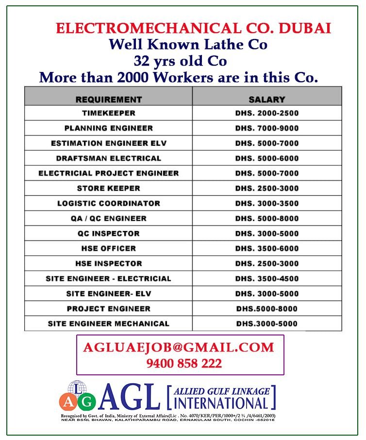 UAE – Job Opportunities at Electromechanical Co., Dubai