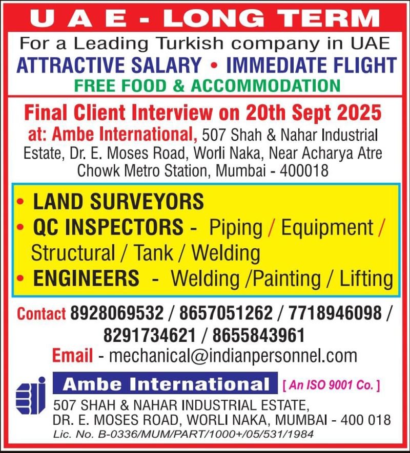 - Final Client Interview: 20th Sept 2025 at Ambe International, Mumbai