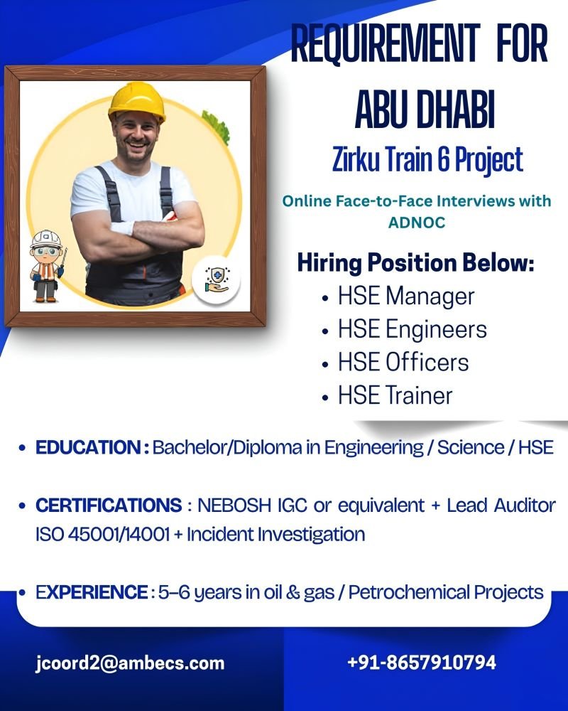 UAE Jobs – Urgent Requirement – Zirku Train 6 Project (Abu Dhabi)