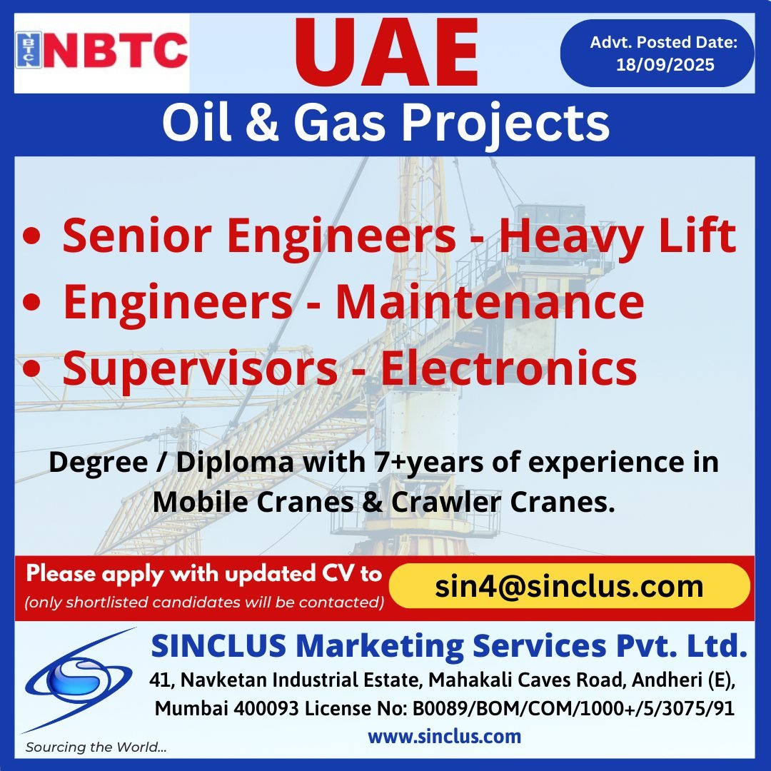 Are you an experienced professional in the oil and gas sector? Sinculus Marketing Services Pvt. Ltd. is seeking talented individuals for exciting opportunities in UAE oil and gas projects. Apply now for the following positions: