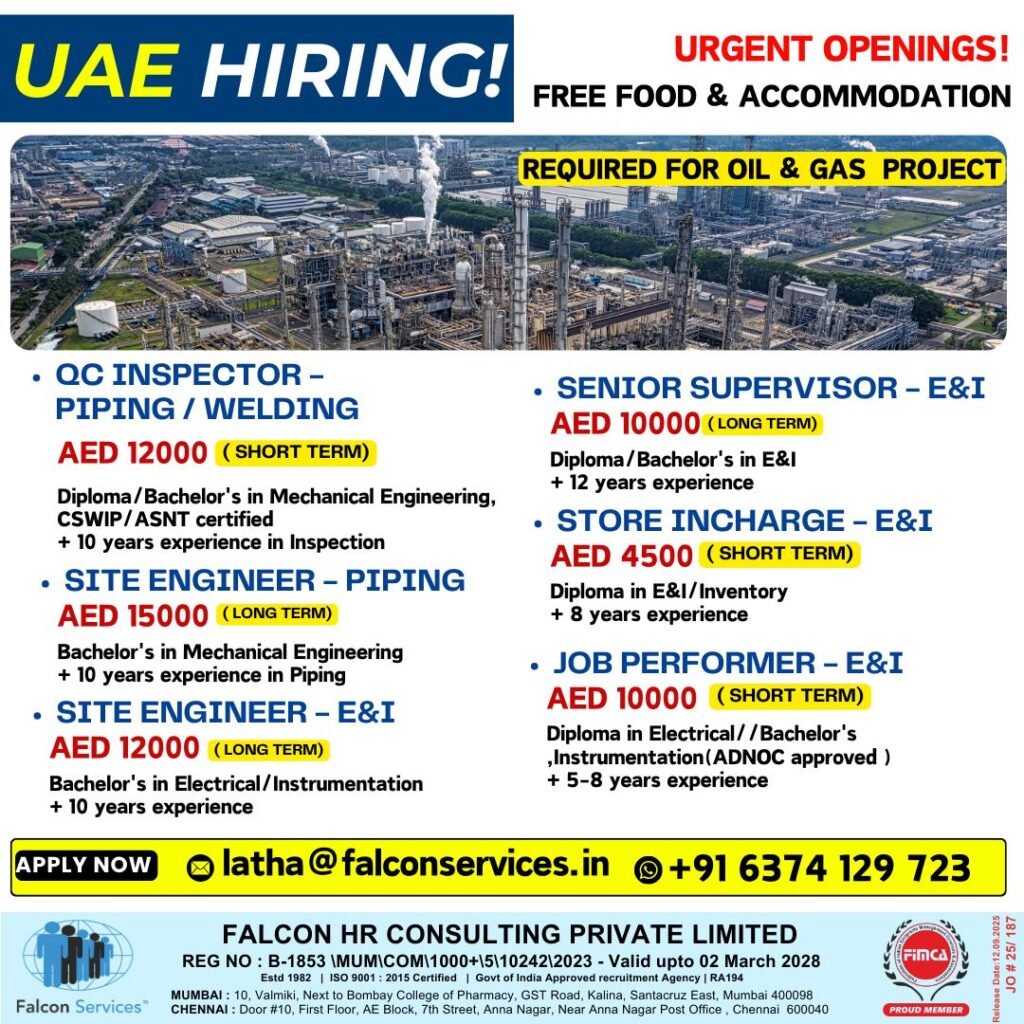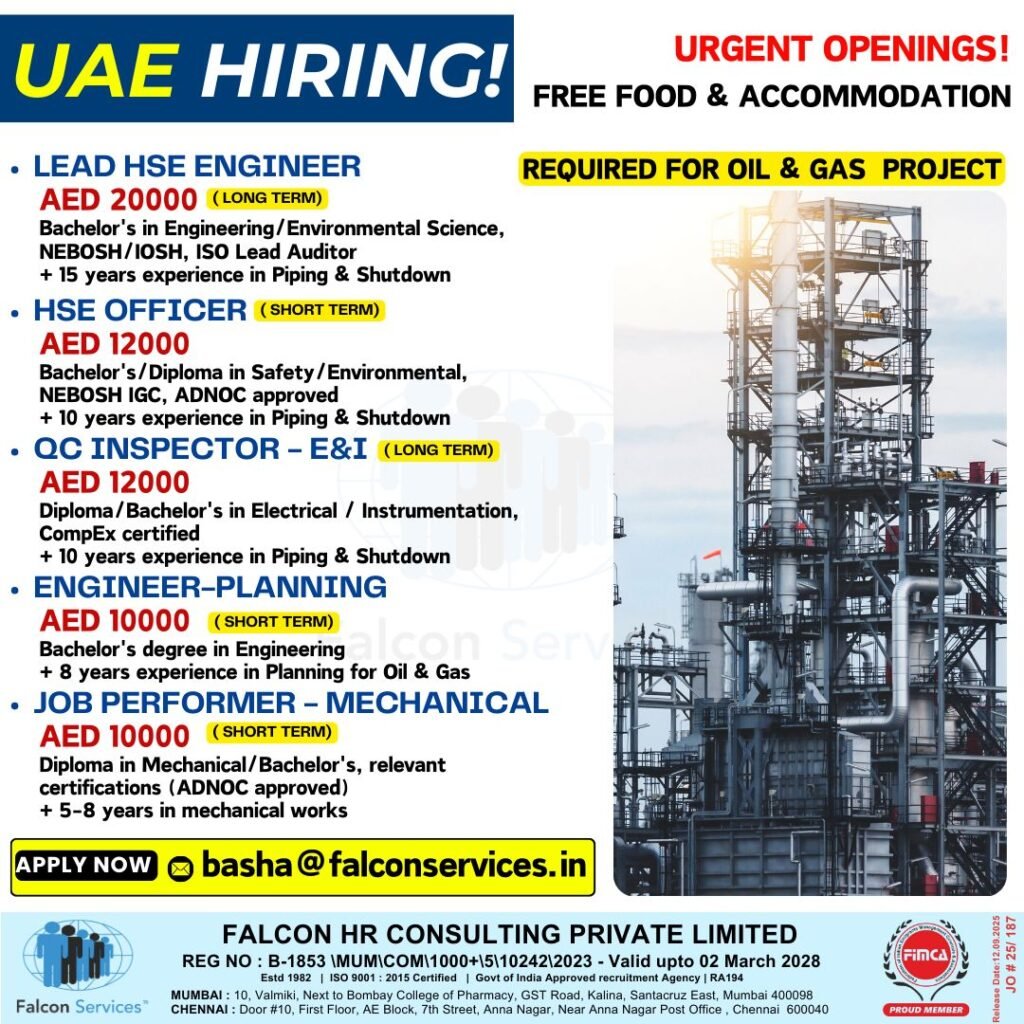 Large Vacancies in Engineering, QA/QC, HSE, Planning, Electrical, Mechanical & More!