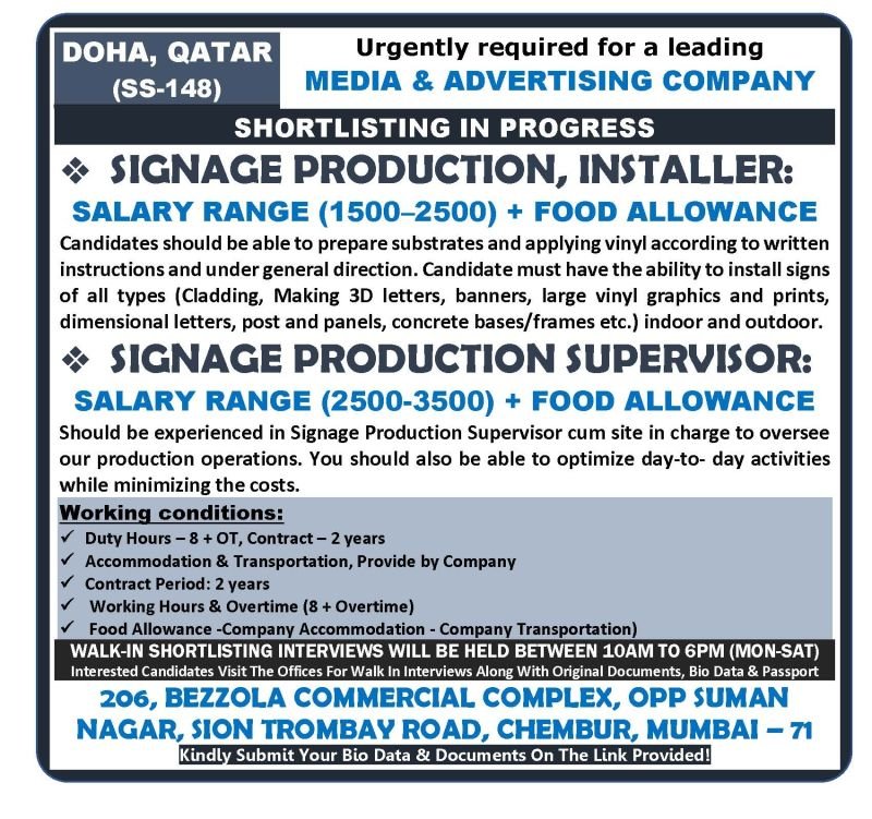 Read the ad to know more about the vacancies and the qualifications / Experience reqd. | Read the Ad carefully before you apply.